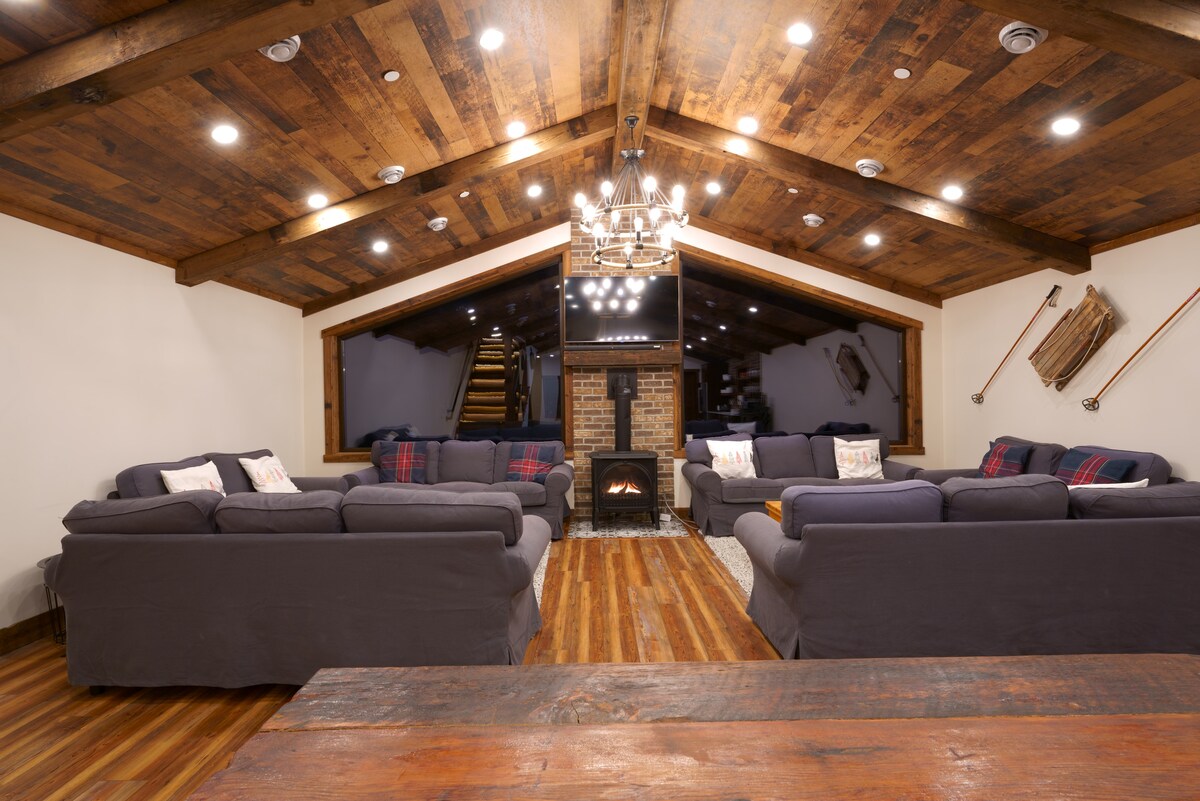 Chalet de madera real meticulosamente mantenido con 3 baños súper limpios. Fácil acceso a la cabaña, los ascensores y el pub. Sala de estar íntima y cálida con chimenea de madera, en el lado derecho de este dúplex, empapada de esa acogedora sensación de cabaña de madera. La gran cubierta trasera tiene barbacoa junto a una cocina moderna totalmente equipada y un comedor. Todo con impresionantes vistas a la colina de esquí. Ideal para reuniones. Baja las escaleras para jugar al futbolín. Xbox Series X en la televisión OLED. Inicia sesión en tu Netflix. Disney+ gratis y wifi gratis sin límites de datos.