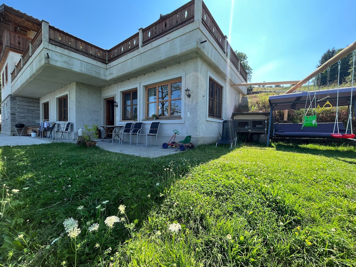 Moderna casa de 160 m² con una unidad residencial en el primer piso con una gran vista de los Alpes, justo a las afueras del principal destino turístico de Salzburgo. La maravillosa zona del lago de Salzburgo está a unos 20 minutos. El mundialmente famoso Salzkammergut está a solo 25 minutos. Los huéspedes usan la casa completamente solos. Un gran balcón te invita a disfrutar de la puesta de sol. El jardín te invita a jugar o relajarte y está protegido de las miradas del granero por un gran seto.