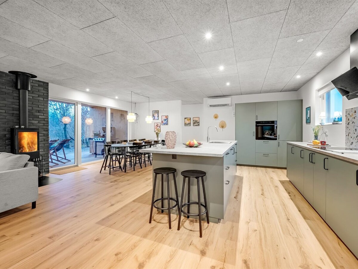 Casa de verano con piscina y 2 terrazas en el encantador Jegum Ferieland donde puedes disfrutar de las vacaciones en la casa de 148 m2. Totalmente equipado con muebles de jardín, parrilla, etc. Cerca de la zona céntrica con un gran parque infantil, restaurante, sala de billar y pequeña tienda. La casa y la zona son especialmente adecuadas para personas que desean comodidad, tranquilidad y experiencias en la naturaleza, así como para familias con niños pequeños. Hay cuatro dormitorios y dos baños + ducha en el área de la piscina. Además, hay una sala de estar grande y luminosa con una zona de cocina integrada.
