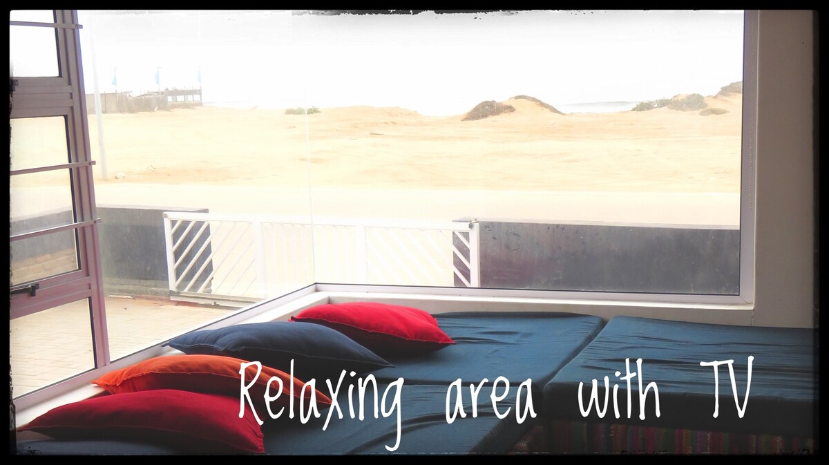 Neat and spacious 2 bedroom, full bathroom, open plan lounge and kitchen flat. Outdoor BBQ and deck with a fantastic view of the ocean and desert. Situated on the first floor in the CBD. It's a tiny holiday town with a big heart. Your stopover en-route to and from Damaraland and Etosha. Perfect stay over base to go on daily nearby excursions. NO GARAGE. NO PETS Laundry available on request. Daily cleaning services on request. We can accommodate 2 extra individuals.