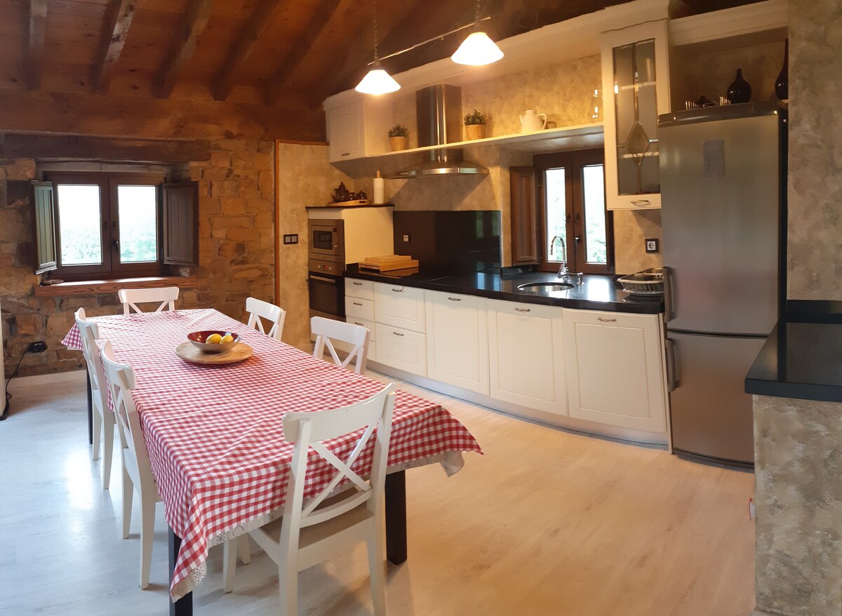 Casa antigua de mampostería de piedra, cuenta con un amplio salón con chimenea y mesa de madera maciza, cocina con todos los electrodomésticos, un baño y un aseo, las habitaciones están en la planta superior y una de las habitaciones tiene chimenea individual. En la entrada hay un gran porche equipado con mesas y sillas. Está ubicada en medio de la naturaleza en el centro del Parque Natural Ojo Guareña, el aeropuerto más cercano está a 80 km (1 hora) y cerca de estaciones de esquí.