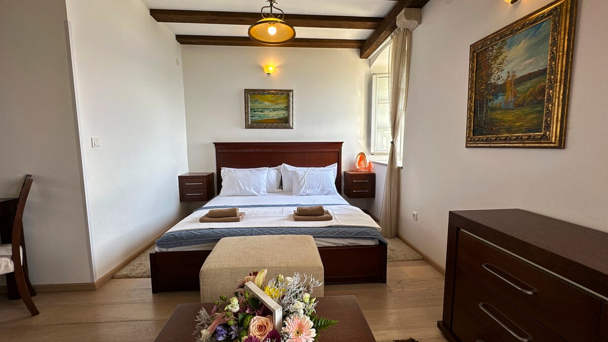 This authentic apartment in a 19th century building, has both an aura of ancient Herceg Novi and modern amenities. It is very quiet, despite being situated in the heart of the town. Just a minute from the main square, popular cafes, shops, bars and art galleries. Comfortable bed and picturesque views from every window. Beaches, Skver and the promenade are in 6 minute walk, main bus stop is in 5 minute walk. The apartment is warm and sunny, so you can enjoy Herceg Novi even in winter time.