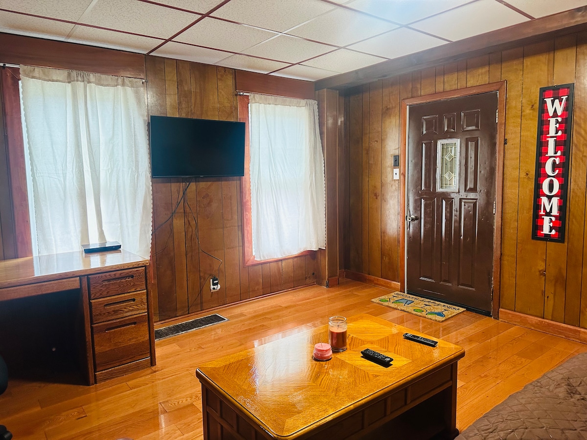 Apartamento entero en la planta baja en una ubicación tranquila cerca de la salida 30 de la I-90. A poca distancia en auto de Cooperstown, Herkimer Diamond Mines, el sendero para bicicletas del estado de Nueva York o el parque Adirondack. También hay entrada compartida con estacionamiento para dos vehículos en línea, en la calle también hay estacionamiento en la calle. Entradas privadas de la puerta delantera y trasera. 2 dormitorios, 1 baño, 1 sofá cama/silla doble extraíble y colchón de aire tamaño queen. Amplio área de cocina/comedor. Televisores inteligentes con aplicaciones de streaming disponibles, conexión wifi gratuita de alta velocidad.