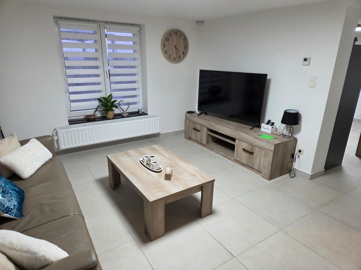 Estamos situados en una zona muy tranquila de nuestro pueblo situado a orillas del Mosa cerca de Maastricht y Lieja. Con una ubicación ideal para visitar Lieja, el País de Herve, las Ardenas, Maastricht y sus alrededores, Aquisgrán... Ponemos a su disposición un estudio (25 m²) totalmente equipado en una parte de nuestra casa. Entrada independiente y aparcamiento privado. Vinciane le dará la bienvenida con calidez y discreción .