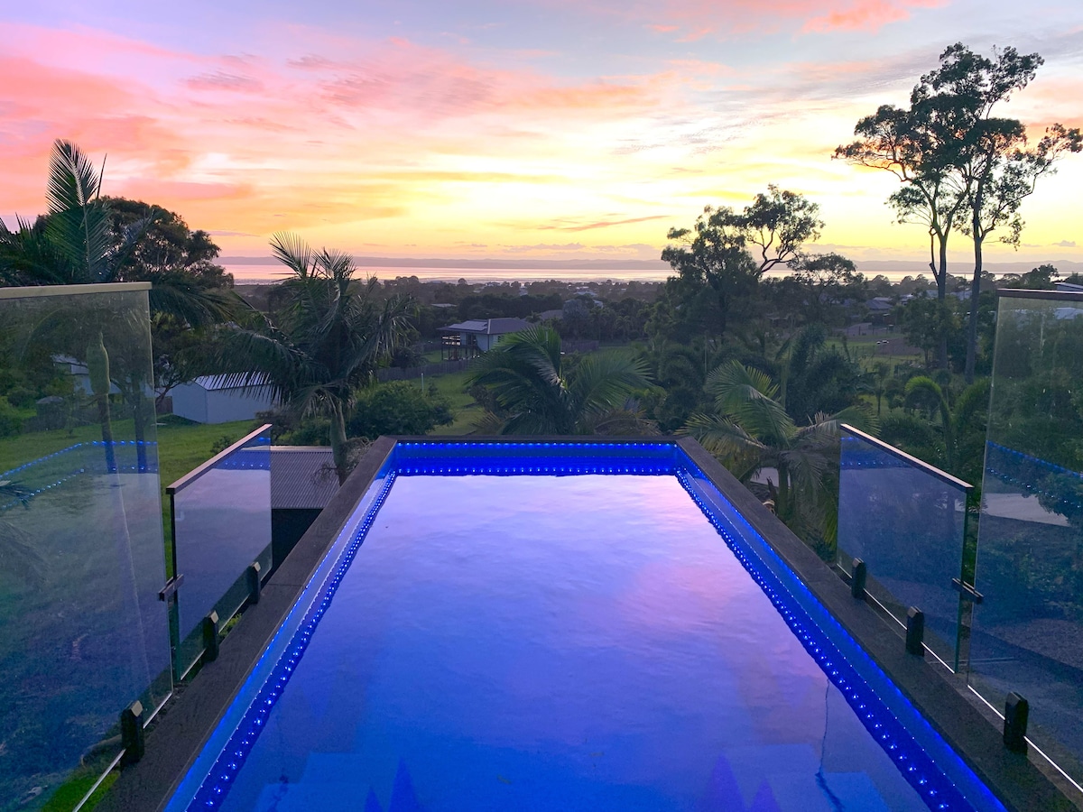 Relájate en "Bayview", una villa de 3 plantas que ofrece 3 dormitorios impresionantes con ropa de cama de hotel de lujo, 2 baños, piscina privada y tu propia terraza en la azotea. A pocos pasos de impresionantes playas, cafeterías, restaurantes y el emblemático muelle de Urangan. Disfruta de tu cocina totalmente equipada con electrodomésticos nuevos, amplio salón con TV inteligente, barbacoa junto a la piscina y wifi gratuito. Tu suite principal es un oasis privado con baño privado, balcón y espacio de trabajo en estudio, área de yoga/meditación con esterillas de yoga proporcionadas.
