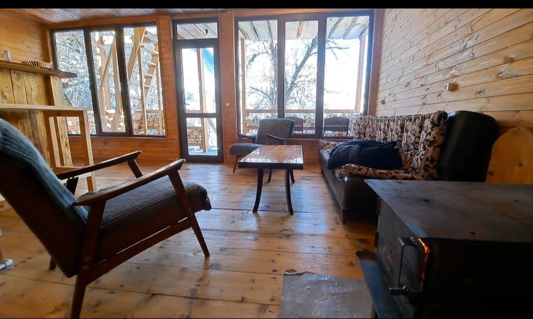 Stargazer’s Retreat with Mt. Ushba Views Escape to our wooden house in peaceful Lakhushdi. The highlight? A magical bedroom with a glass roof for stargazing, offering the best views of Mt. Ushba. Surrounded by a garden, farm, and forest, it’s the ultimate nature retreat. Includes 2 bedrooms, kitchen, and cozy living area. Want a taste of Svaneti? Our host family nearby prepares delicious, homemade farm-to-table meals upon request. Authentic, quiet, and unforgettable.
