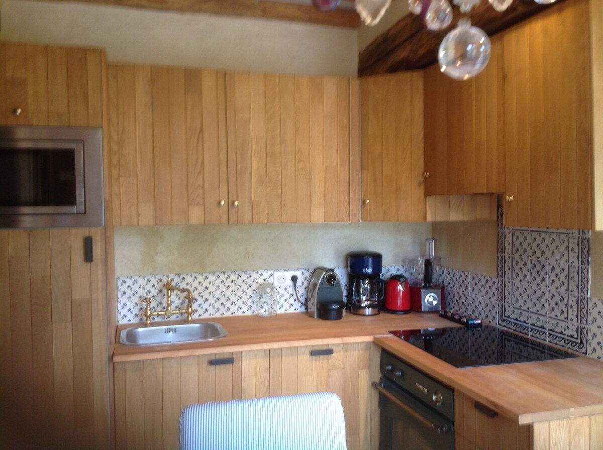 Le ofrecemos nuestra pequeña casa de huéspedes de 30 m2 en la parte inferior del jardín, con todas las comodidades: dormitorio con cama de 140, baño con ducha, cocina equipada, pequeña sala de estar con sofá cama. Ideal para 2-3 personas. ¡Atención! Estamos en modo Tiny House, el techo no es muy alto, ¡complicado para personas de más de 1,95 m! Tiene una hermosa terraza con barbacoa y Mollkye, sin vecinos. Pongo a su disposición té y café para su llegada, la cama estará hecha.