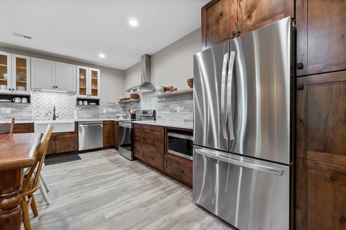 Cottage by the Creek is a 600 sq ft converted grain barn built in the early 1900's. We've converted the space into a light and bright one bedroom, with a loft. There is a fully functional kitchen and custom bath with tile shower. The 30 ft front porch offers views of the cattle farm across the street and the year round flowing creek. Or enjoy the back patio with hot in and fire pit.