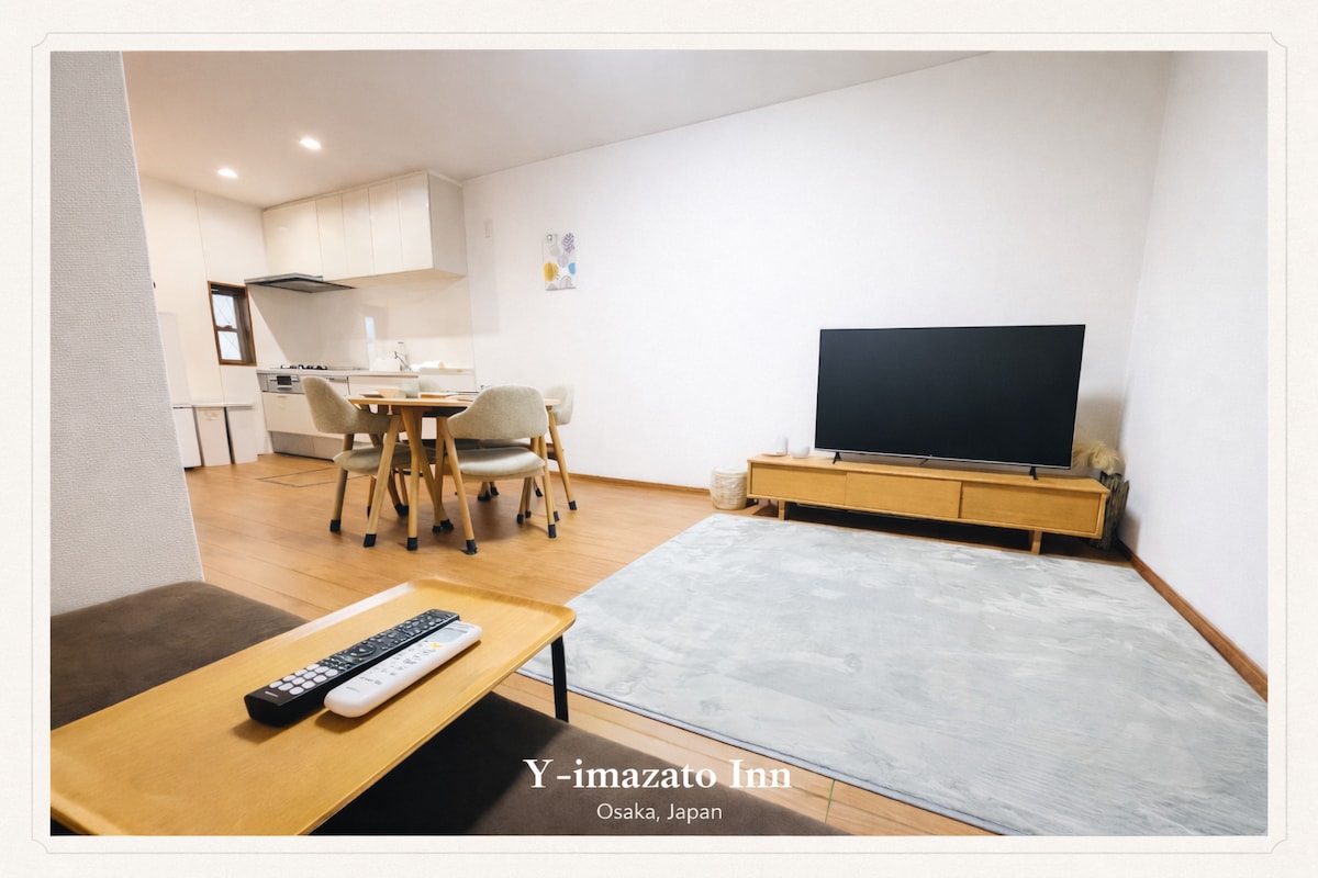 Casa de estilo MUJI, luminosa y sencilla en un barrio tranquilo. Perfecto para 2–4 huéspedes (parejas, amigos, familias pequeñas o viajeros de negocios). Fácil acceso a Namba (7 minutos en metro desde Imazato), Nipponbashi, Tennoji y Umeda. Wi-Fi rápido, camas de estilo occidental, cocina completa y lavadora-secadora lo hacen ideal para estancias largas y trabajo. Hay descuentos semanales y mensuales disponibles, por lo que es una excelente base para alojarse en Osaka durante 1 semana o más y explorar Kioto y Nara en excursiones de un día.
