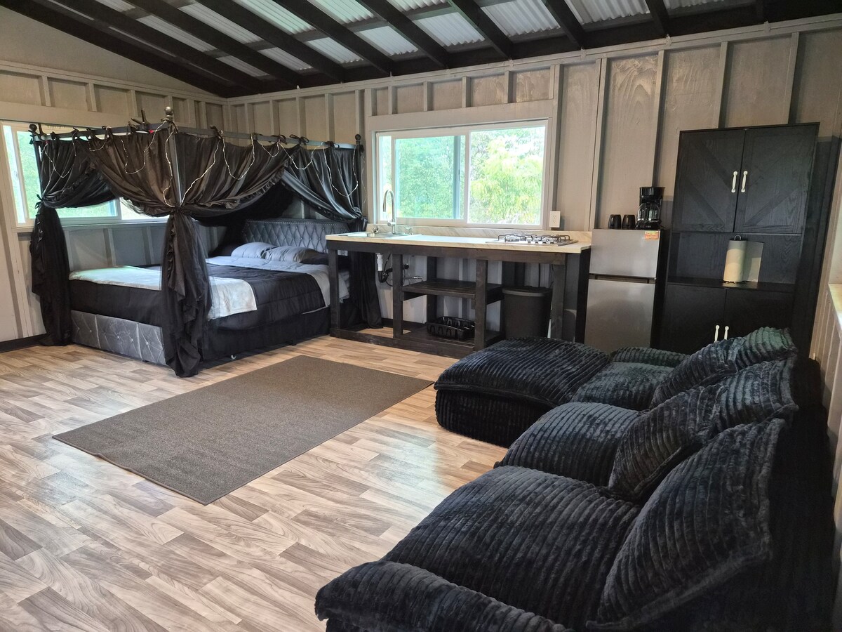 Te damos la bienvenida a Ohia Hideaway, donde la comodidad cumple con la responsabilidad ambiental. Despiértate con un desayuno estilo servicio a la habitación de fruta local y productos horneados caseros rodeados de kilómetros de exuberante selva tropical nativa hawaiana. Es el lugar perfecto para contemplar las estrellas y relajarse en el jacuzzi privado después de un día de aventuras. Quédate o explora lo que ofrece el pintoresco área del volcán. Puedes pasar tus días viendo fuentes de lava, haciendo senderismo por el parque nacional, explorando tubos de lava, jugando al golf o visitando la bodega.