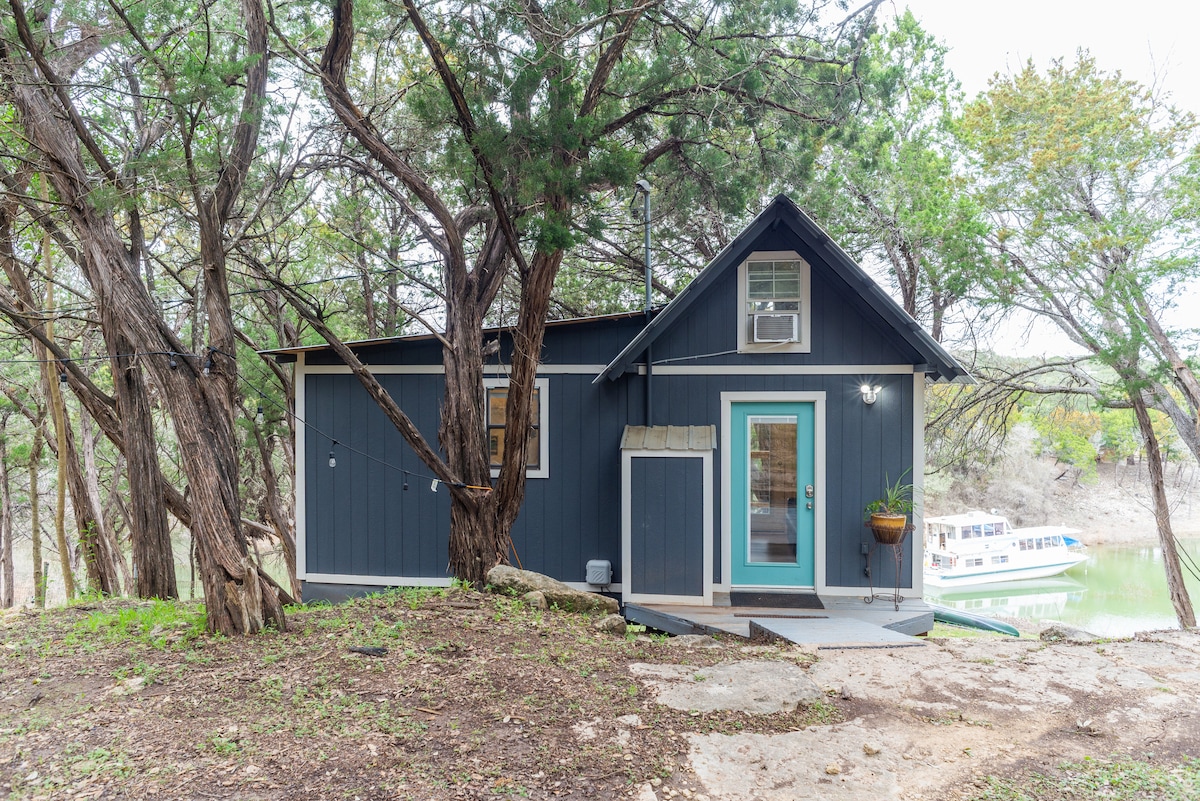 Ubicada en 2 acres con la propiedad adyacente de Lake House y Barndominium, la Tiny House es una casa de barcos remodelada con vistas tranquilas. Nota: Los niveles de agua varían en la cala privada. PREGÚNTALE AL ANFITRIÓN ANTES DE RESERVAR si la zona costera es importante para ti. Los huéspedes podrán acceder a kayaks, tablas de SUP, parrilla de gas y terraza privada. Los perros amistosos son bienvenidos con una tarifa de mascotas de 50 USD. Dormir: colchón de espuma king en el loft superior, sofá cama de cuero de tamaño completo, cuna de espuma doble.