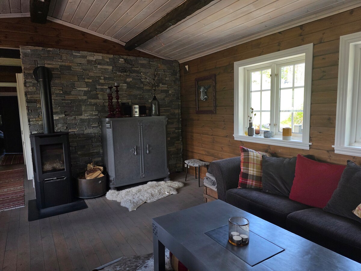 Acogedora cabaña en un entorno pintoresco con vestíbulo de entrada, sala de estar, cocina, lavadero, inodoro, 2 dormitorios y más. Conectado a la electricidad, TV y banda ancha de fibra de Altibox. El agua se recoge del grifo del porche. La cabaña no tiene baño, ya que no hay agua corriente. Ducha al aire libre en el lateral de la cabaña. Estufa de leña en la sala de estar y mucha madera extra en la "cabaña de madera". Muebles de jardín, parrilla de gas, chimenea al aire libre y chimenea exterior. Oportunidades de pesca y excelentes áreas para recoger bayas. Esta es una cabaña con un estándar simple para aquellos que aman la naturaleza y/o quieren paz y tranquilidad.