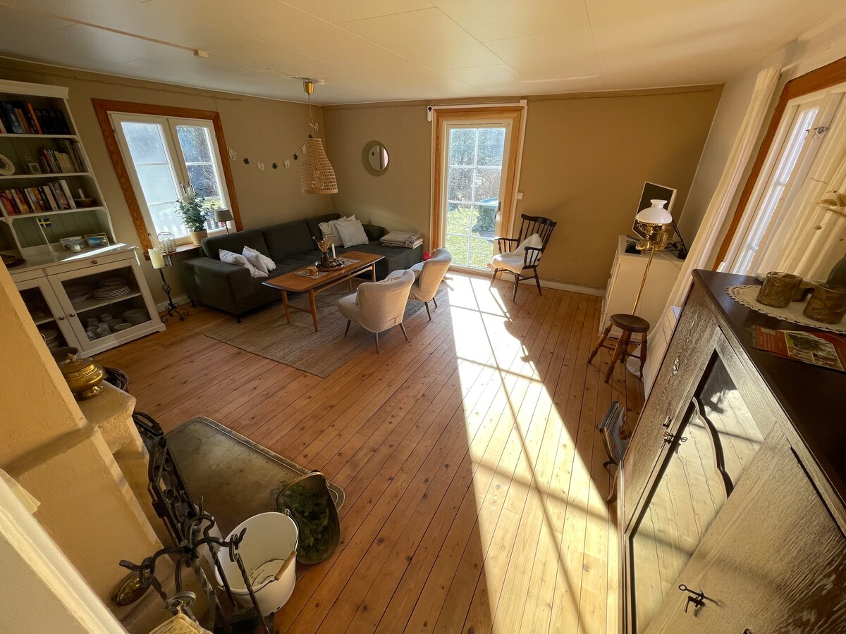 Relájese en una casa de madera tradicional sueca del siglo XIX.Por la tarde, los rayos del sol bañan la entrada y el salón con los colores vivos de las ventanas de la puerta de entrada hechas a mano. El sol de la tarde invita a relajarse en el antiguo banco de madera de la gran mesa del comedor o en la terraza. La mejor manera de terminar las frescas tardes de invierno es frente a la chimenea del salón o salir a la sauna de barril, junto a la granja de cabras con su propia producción de queso.