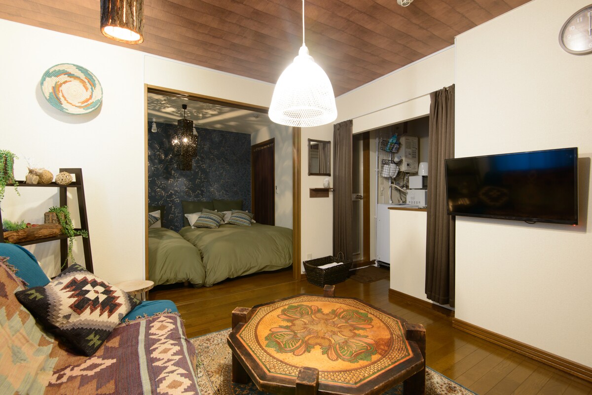 ¡A 2 minutos a pie de la estación! Amplia habitación japonesa, con buena luz solar. Está cerca de parques, restaurantes de moda y del centro de la ciudad.
