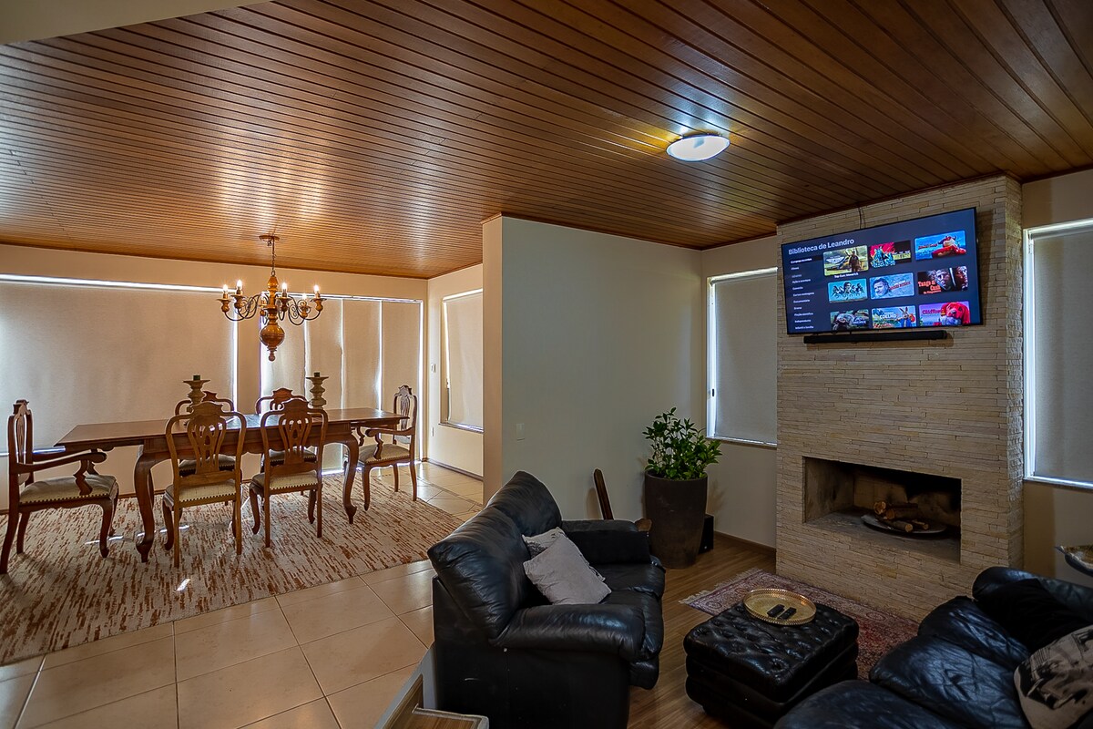 Comfortable and spacious farm facing a dam, perfect for relaxing with a barbecue by the pool, practicing water sports, or working in isolation and close to nature with fiber optic internet. It has a swimming pool with a large barbecue place nearby, a mini playground for children, a soccer field, volleyball and “beach tennis” on the grass, an orchard, and two rooms with a large table for meals (one indoor and one on a covered terrace ).