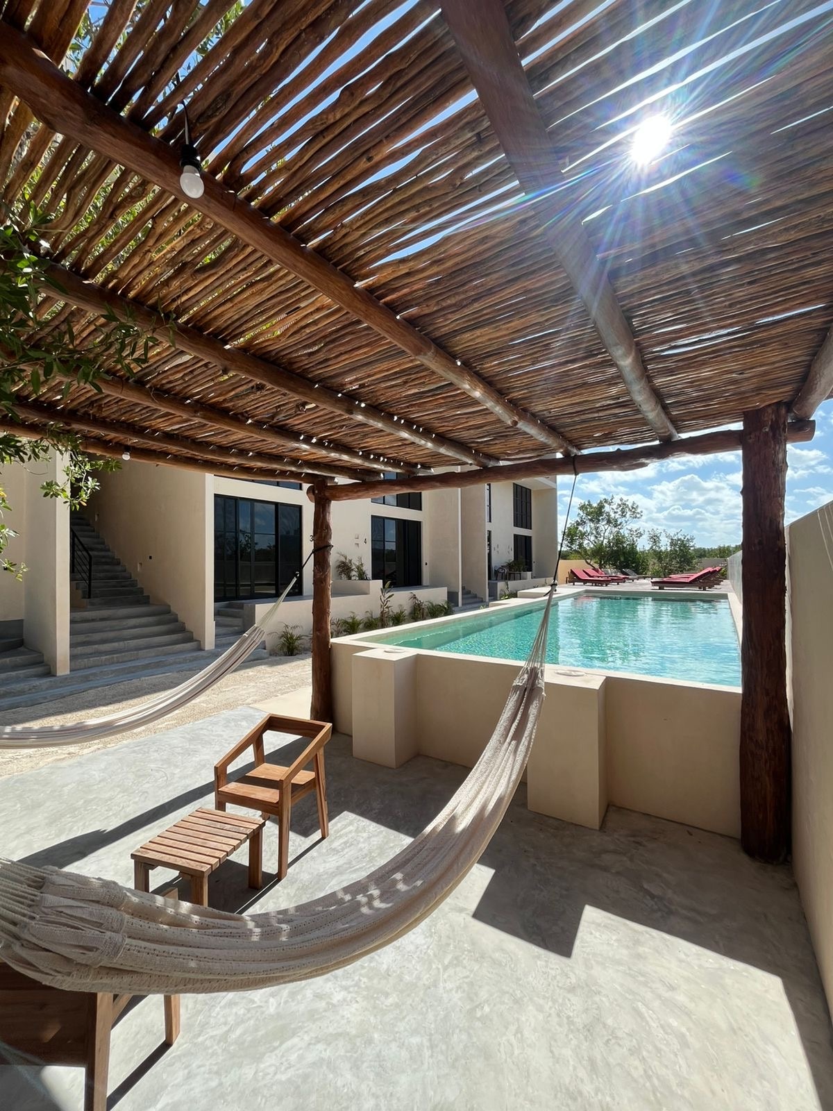 Polita es una Tiny House a 200m de la playa con una estupenda piscina de buen tamaño. La construímos con pasión para que tú la disfrutes. Aquí tendrás todo lo necesario para relajarte. Estarás a unos pasos de las playas más bonitas y tranquilas y cerca de beach clubs y restaurantes. Tiene lo necesario para preparar tus comidas y disfrutarlos en el deck privado rodeado de vegetación mientras te tumbas en la hamaca.