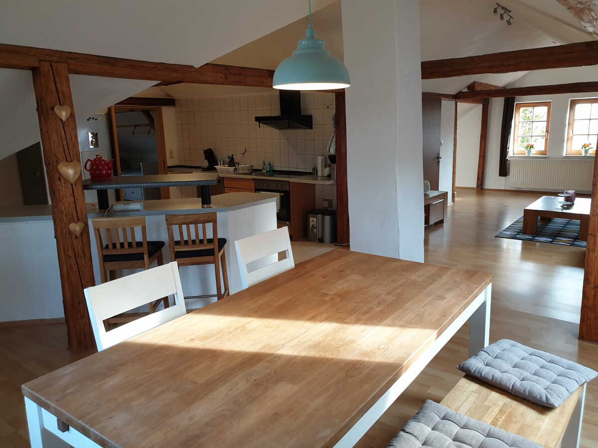 El apartamento está situado en la planta baja de una antigua escuela que data de 1888. El apartamento está idealmente ubicado entre la Suiza franconiana (una popular zona de escalada y senderismo), Erlangen (universidad, Siemens) y Núremberg (feria comercial, mercado navideño). Debe su encanto especial a los numerosos elementos arquitectónicos (por ejemplo, tablas de suelo de Franconia). El jardín te invita a desayunar, hacer barbacoas y relajarte, los alrededores directos para largas caminatas y excursiones en bicicleta.