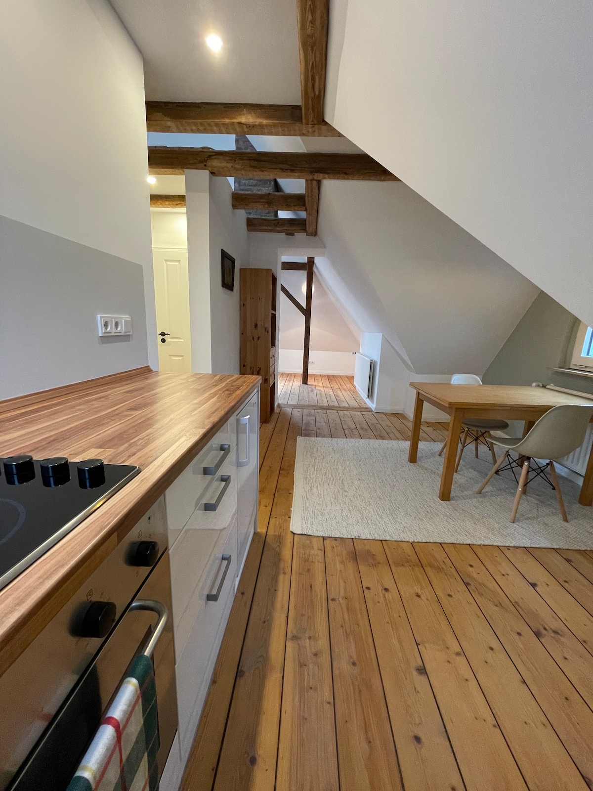 Este pequeño y elegante apartamento está en el centro de Unna. La estación de tren y el centro de la ciudad están a pocos pasos. Los supermercados y una parada de autobús están muy cerca. Hay un espacio de estacionamiento gratuito disponible. El apartamento está ubicado en el primer piso. Encontrarás una cocina totalmente equipada, un lujoso baño con ducha, una acogedora sala de estar con sofá cama y un dormitorio con una cama de 2,00 x 2,00 m de ancho.