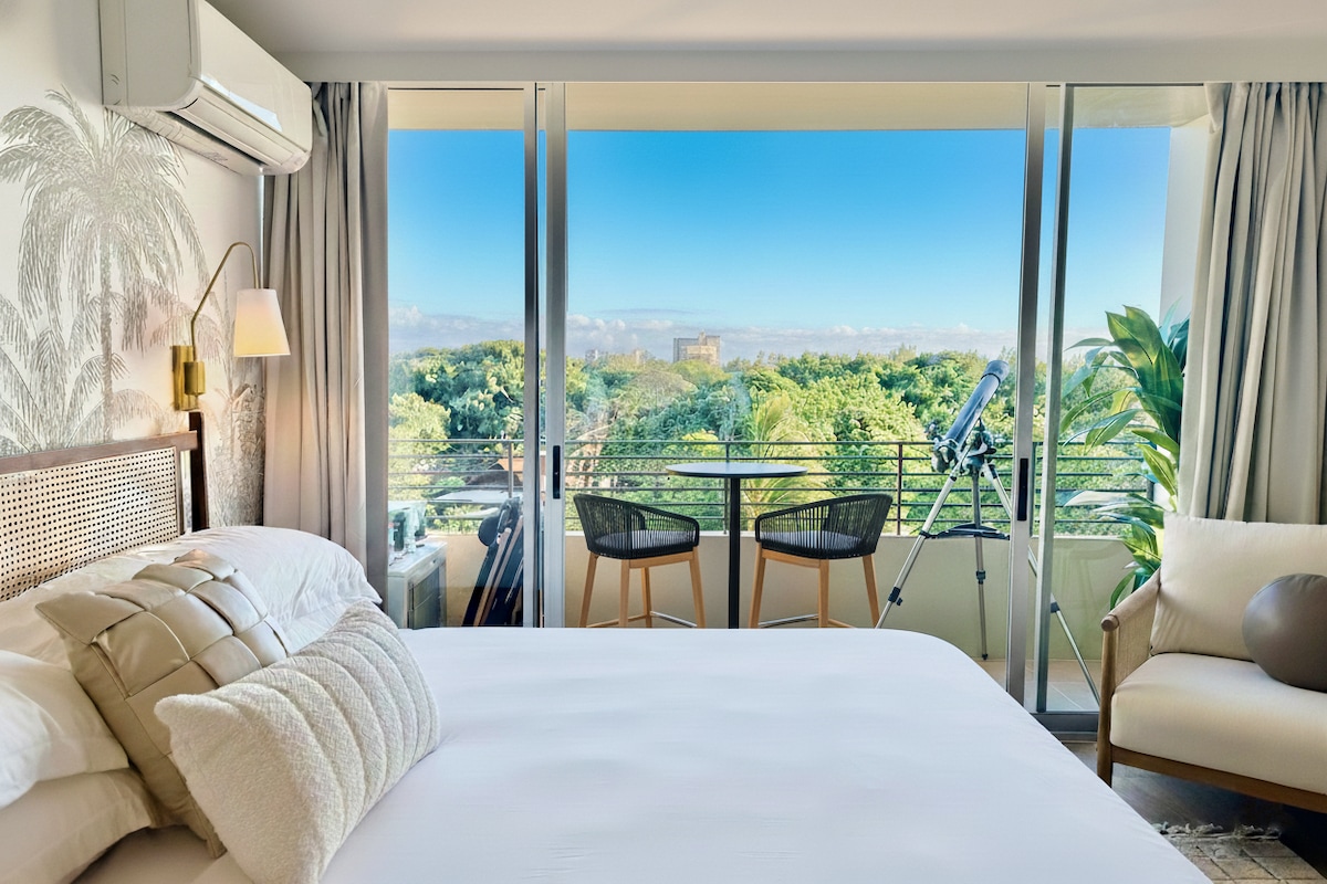 Aloha y bienvenido a tu estadía en la mejor ubicación de Waikiki. Ubicado a pocos pasos de la playa de Waikiki con vistas panorámicas de Diamond Head y el mar desde tu lanai privado. Cena en la mesa de lanai y disfruta de la vista. Por la noche, disfruta de las estrellas y de la luna a través del telescopio. El zoológico de Honolulu, restaurantes, tiendas, surf y una laguna están a pocos pasos. Este es un estudio muy bien equipado lleno de Aloha por un diseñador hawaiano local que será su hogar en el paraíso.