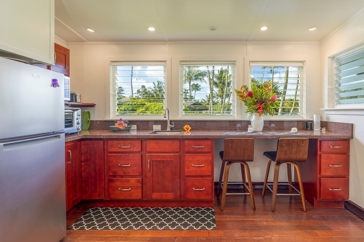 Fern Grotto Inn es el alojamiento perfecto para explorar Kauai. Está situado en el centro de Kapaa, a orillas del río Wailua y a solo una manzana de la playa. Puedes remar por el río Wailua con nuestros kayaks y tablas de remo de cortesía o dar un paseo en bicicleta por el carril bici. De vuelta dentro de esta acogedora cabaña, los techos abovedados y las abundantes ventanas ofrecen una sensación de calidez y amplitud. Consulta todos nuestros anuncios aquí: Airbnb.com/p/ferngrottoinn Consulta todos nuestros anuncios aquí: https://www.airbnb.com/users/2084492/listings Tu alojamiento: construida originalmente en 1952, hemos renovado completamente esta adorable casa de campo para incluir aire acondicionado, suelos de madera, una ducha de azulejos para dos y una decoración tropical contemporánea. Al igual que con todas nuestras cabañas de alquiler vacacional, sus techos abovedados y abundantes ventanas dan una sensación de calidez y amplitud. Garden Cottage es ideal para estancias de una semana o más. Es un estudio con una pequeña cocina totalmente equipada. Los servicios incluyen placa de convección, microondas, mininevera, arrocera, licuadora, hervidor eléctrico, cafetera y tostadora. También tendrás acceso a la parrilla de gas en el jardín. Muchos de nuestros huéspedes lo utilizan como base de operaciones, ya que estamos ubicados a medio camino entre las costas norte y sur. Si necesitas abastecer la cocina totalmente equipada, encontrarás varios mercados de Kapaa a menos de cinco minutos en coche de Fern Grotto Inn. Fern Grotto Inn está situado en el centro de Kapaa, a orillas del río Wailua y a medio camino entre las costas norte y sur. La playa está a solo una manzana de distancia, con varios restaurantes también cerca. Hay varios mercados a menos de 5 minutos en coche.