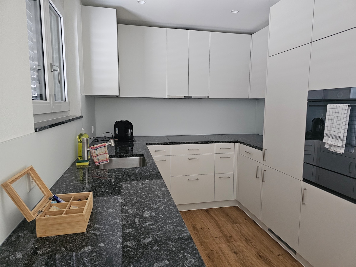 Con más de 200m², le esperan 7 habitaciones modernas para hasta 12 huéspedes. Perfecta para familias, bodas o viajes de negocios. - Mesa de billar y cine en casa - Enorme terraza soleada con parrilla y lounge - Oficina separada - Cocina grande y completamente equipada - 3 baños modernos - 30 min a Zúrich y a Lucerna En plena naturaleza al lado del Albis con numerosas rutas de senderismo. A 5 min. del Türlersee y Park Seleger Moor ¡ideal también para amantes de la naturaleza!