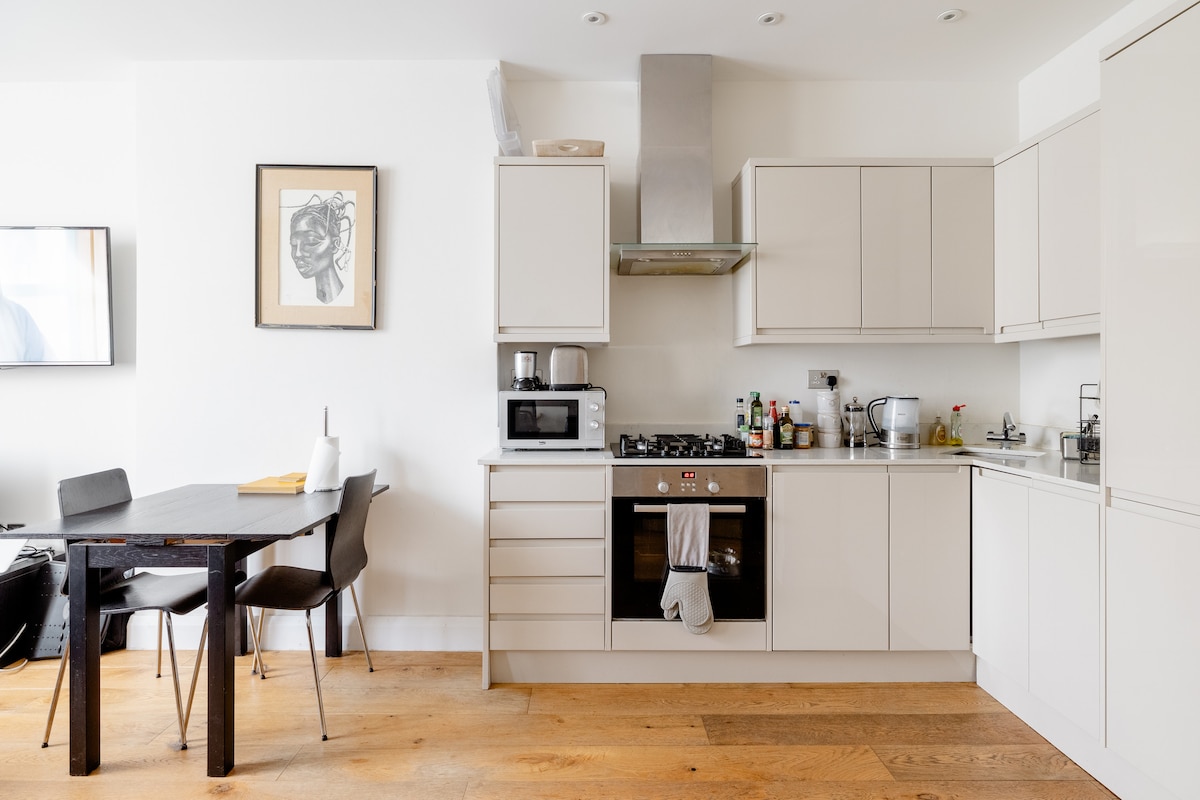 Moderno apartamento de 1 dormitorio con jardín|Mascotas y familias bienvenidas