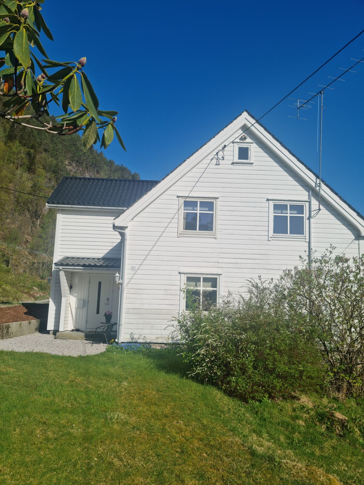 Relájate con toda la familia en este lugar tranquilo para hospedarte. Casa con impresionantes vistas al Sognefjord. Gran terraza junto al fiordo. Muebles de jardín cómodos. Carga gratuita de coche eléctrico. 5KW. Wifi rápido. Todo lo que necesitas para estancias cortas y largas. Limpieza incluida. Ropa de cama y toallas incluidas Legal con perro.