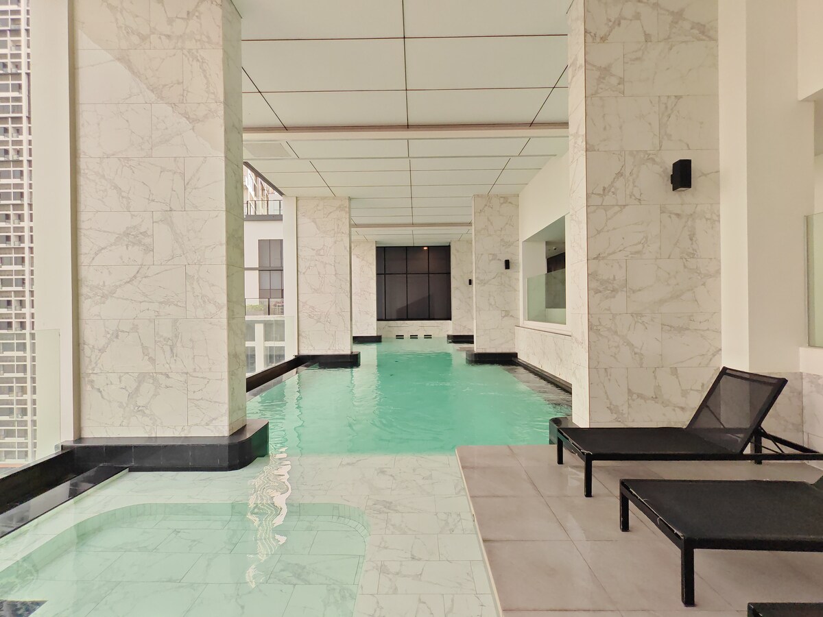 Alójate en un condominio moderno con un punto culminante inmejorable: una piscina infinita en la azotea en el piso 37, donde podrás nadar sobre el horizonte y disfrutar de impresionantes vistas de Bangkok. Esta residencia también cuenta con: • Elegante casa club con áreas de estar • Cómodo espacio de trabajo conjunto para el trabajo a distancia • Gimnasio totalmente equipado y sauna relajante. • Terraza en la azotea con tumbonas para el ambiente de la ciudad. Ideal para parejas, nómadas digitales y viajeros que quieren comodidad y emoción en Bangkok