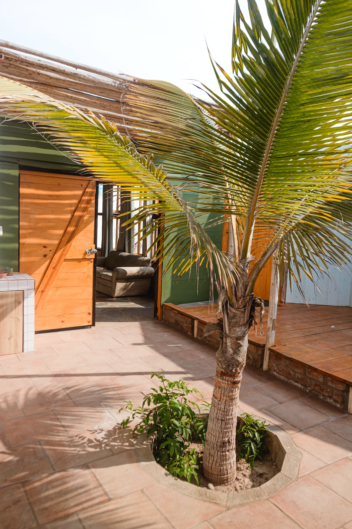 Relájate y acomódate en este espacio rural. El bungalo es un espacio amplio y luminoso de aspecto cálido donde te podrás relajarte cerca a la playa. Al entrar al bungalo cuentas con una terraza privada con un kitchenette abierto y un deck de madera con muebles para poder tomar el sol y disfrutar del aire libre. Las instalaciones interiores cuentan con una habitación grande con cama queen, un sofa, mesa de comedor y ventanales que dan a un patio interior.