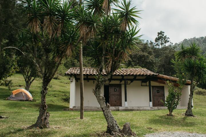 Hospedaje sereno lleno de luz natural. Esta villa entre las montañas tiene dos habitaciones, cocineta, comedor y varios estares de interior y de exterior. Desde la cómoda silla frente al fire pit pueden verse las montañas de cuatro departamentos de Guatemala. Es el lugar perfecto para relajarse, tomarse una taza de buen café huehueteco por la mañana y una copa de vino por la tarde.