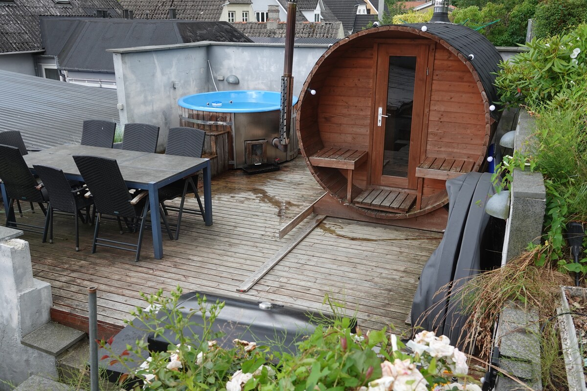 Hermoso estudio independiente situado en un entorno natural verde en un pequeño y antiguo pueblo de pescadores, en la segunda fila, con vistas a Svendborgsund. Brechthuset (Berthol Brecht vivió y trabajó aquí) como el vecino más cercano. Oleaje de los ferrys de Ærø y Skarø-Drejø. A 3 minutos del pequeño e idílico bosque de Tankefuldskoven y del autobús urbano. Estudio de 32 m². Amplio y luminoso salón con camas, sofá y mesa de comedor, pequeña cocina privada, baño con inodoro, ducha y bañera de hidromasaje. Terraza amueblada hacia el estrecho.