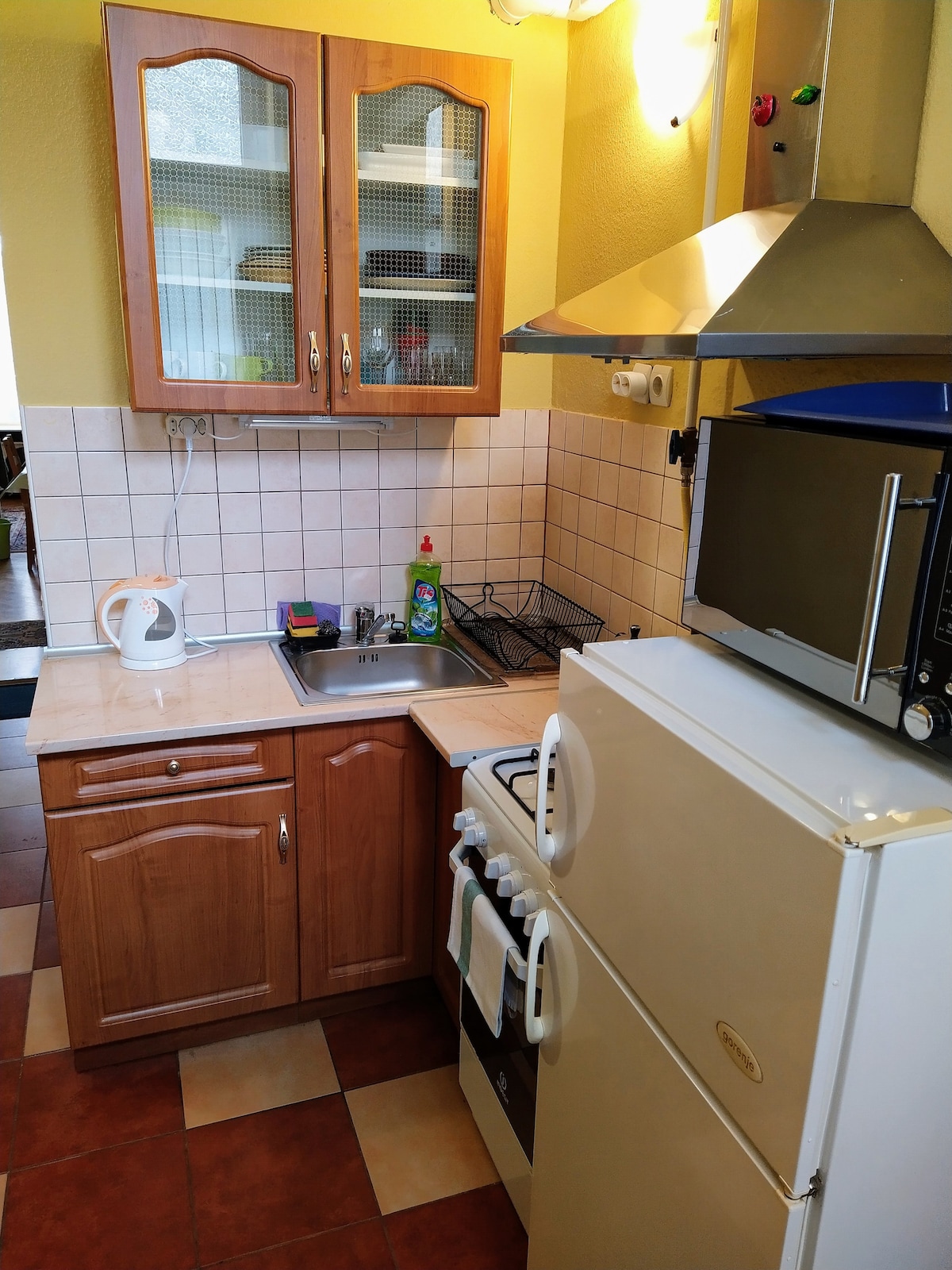 Se alquila apartamento exclusivo completamente renovado y bien equipado, con dos dormitorios y cocina-sala de estar (sofá esquinero extraíble) en el centro de Győr, con vistas al parque. Cocina con placa de gas, horno eléctrico, microondas, lavavajillas, cafetera Nespresso con cápsulas.