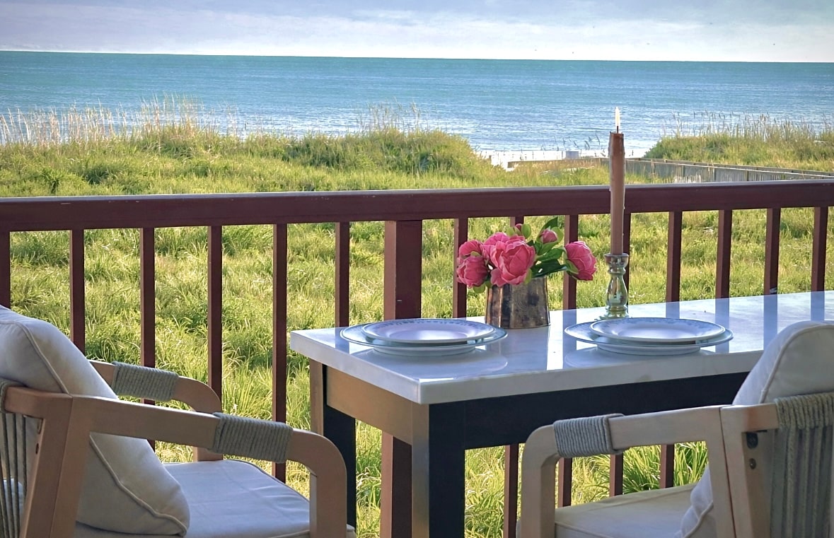 Apartamento de playa renovado, 2 dormitorios, 2 baños, estilo rústico elegante