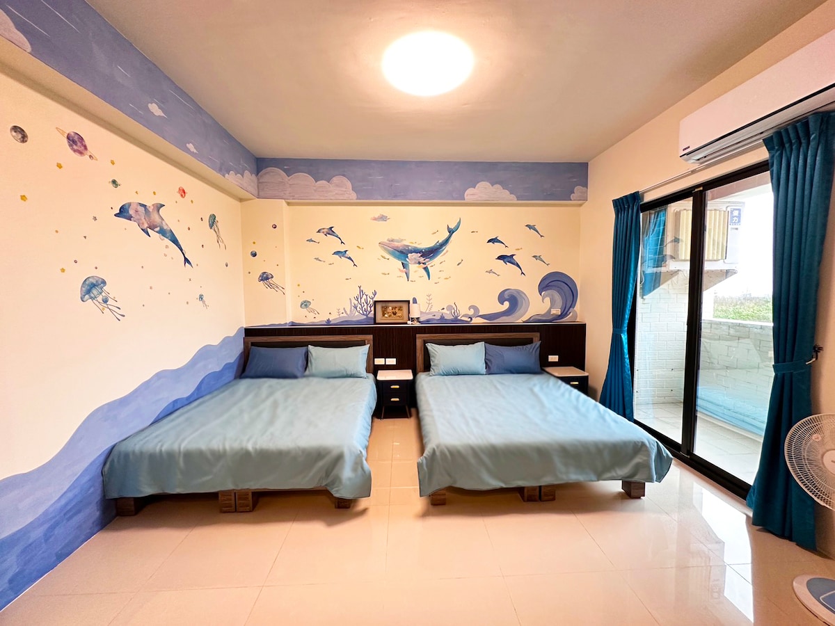Penghu - Pensión alegre - Paquete de 4 habitaciones 525- (para 12 personas, 2 habitaciones para 2 personas, 2 habitaciones para 4 personas, con camas supletorias para 20 personas)