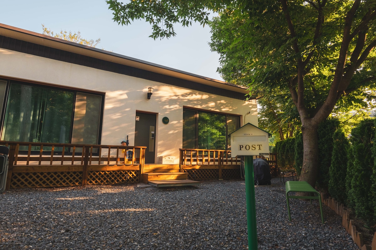 aeyhaus es una casa independiente tranquila de dos pisos con vistas a una impresionante casa montañosa. Puedes disfrutar del paisaje natural que cambia con las estaciones, obtener estabilidad mental y física y curación, y la tranquilidad y privacidad del entorno circundante están garantizadas. Hay una sala de estar, cocina y aseo en el primer piso, y dos dormitorios y un baño en el segundo piso. La ropa de cama se lava todos los días y la limpieza es la máxima prioridad, por lo que la satisfacción de los huéspedes es alta. Los muebles interiores sensacionales y una gran variedad de vajilla también son otra jactancia. Se recomienda tomar un té relajante o disfrutar de un picnic sencillo mientras se contempla el césped azul bien cuidado y los hermosos parterres de flores, y en invierno, disfrutar de la vista de la montaña nevada desde lejos o tener un rato de fuego frente a la chimenea. Esta casa, que pretende ser el mejor alojamiento preferido por los huéspedes, es un lugar donde viven y cultivan parejas de jubilados. Esperamos que pases un rato cómodo y feliz en casa con tu familia, amantes y amigos en un espacio cálido con un estilo de mediados de siglo.