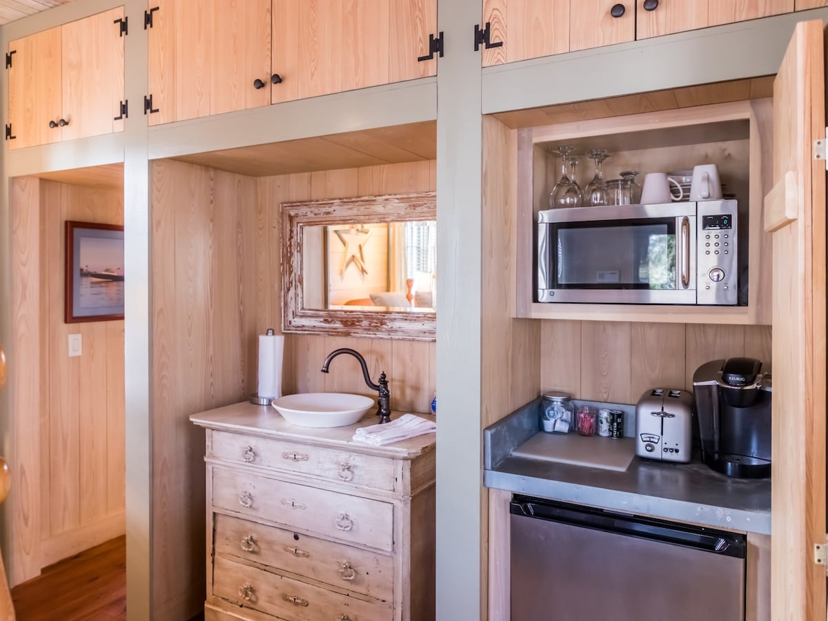 Sailor and Piper’s Sandbox was built and designed with Love …especially for our granddaughters Sailor, Piper, and Ridley Banks. Our beach cottage reflects authentic beach vibes inside and outside. You immediately get a feeling of home when you enter and will appreciate our attention to detail with pine and juniper wood from floor to ceiling, boat lights, brass port hole mirrors, etc. It's a place to relax, fish, kayak, commune with nature...great sunrises and sunsets.