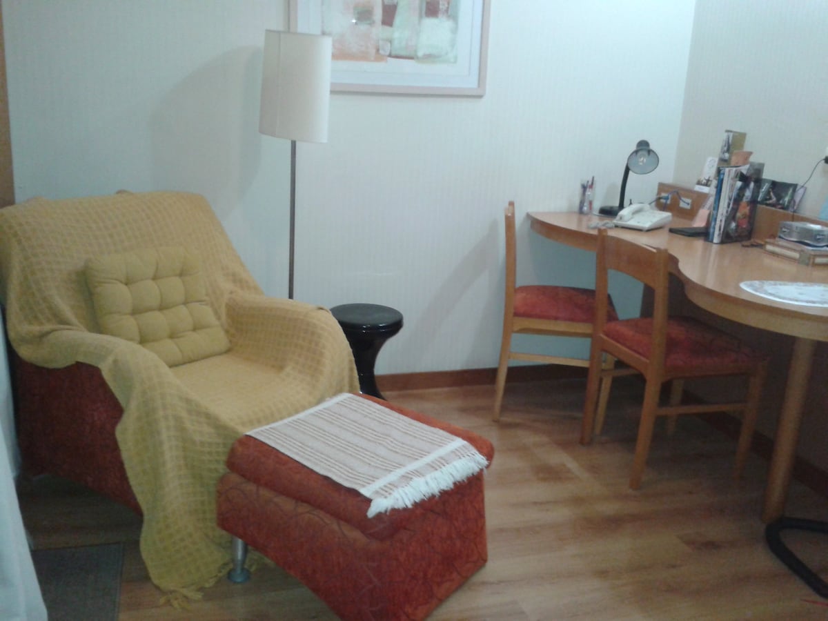 Piso privado, en Condominio Stella Vega, con balcón, sala de estar, dormitorio suite con cama doble (Queen), suelo de madera, ropa de cama/toallas de baño, cable NET, WIFI (enlace 200/señal 40 mbs, estación de trabajo y snacks integrados, aire acondicionado, mostrador para snacks/comidas con microondas, cafetera, minibar y artículos básicos (platos, cubiertos, vasos, etc.) y fregadero adicional. Garaje con valet. Servicio de limpieza diario incluido, lavandería adicional en los juegos de cama, a cargo del huésped.