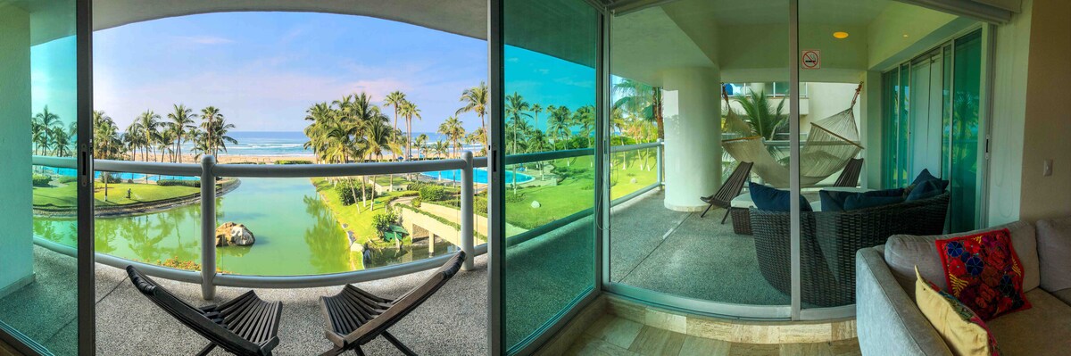 A pie de playa, en lo mejor de Acapulco Diamante. Ideal Semana Santa y Pascua: ¡todo el tiempo el toldo del depto en playa apartado para uds! No hay que apartar Departamento en 5º piso , elevador, 6 personas. 2 recámaras, 2 baños y amplia terraza vista al mar. Playa privada Todo funcionando: aire acondicionado, WiFi y streaming. Opción de servicio de comida casera. Limpieza opcional. Seguridad 24 hrs y estacionamiento. Perfecto para familias o escapadas de descanso. ¡los esperamos!