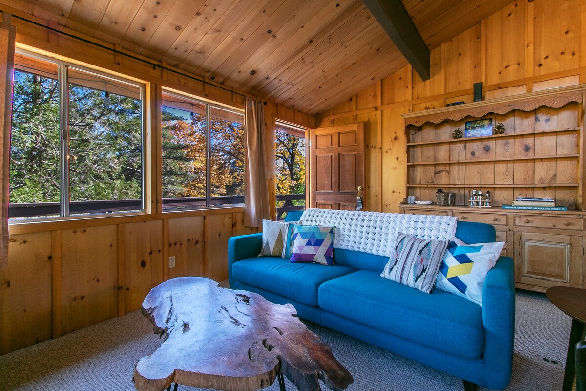 ¡Relájate y disfruta de la naturaleza en nuestra hermosa, tranquila y amorosamente remodelada cabaña con estructura de madera en forma de A, ahora con una nueva suite principal y un solárium! A poca distancia a pie del centro de la ciudad, está perfectamente situado en una calle tranquila entre los árboles, repleta de arrendajos azules y colibríes. Acurrúcate junto a la chimenea y disfruta de melodías con sonido envolvente, o date un baño de tipo spa después de recorrer los senderos cercanos. Como pareja creativa, diseñamos este espacio para escapadas románticas y retiros creativos.