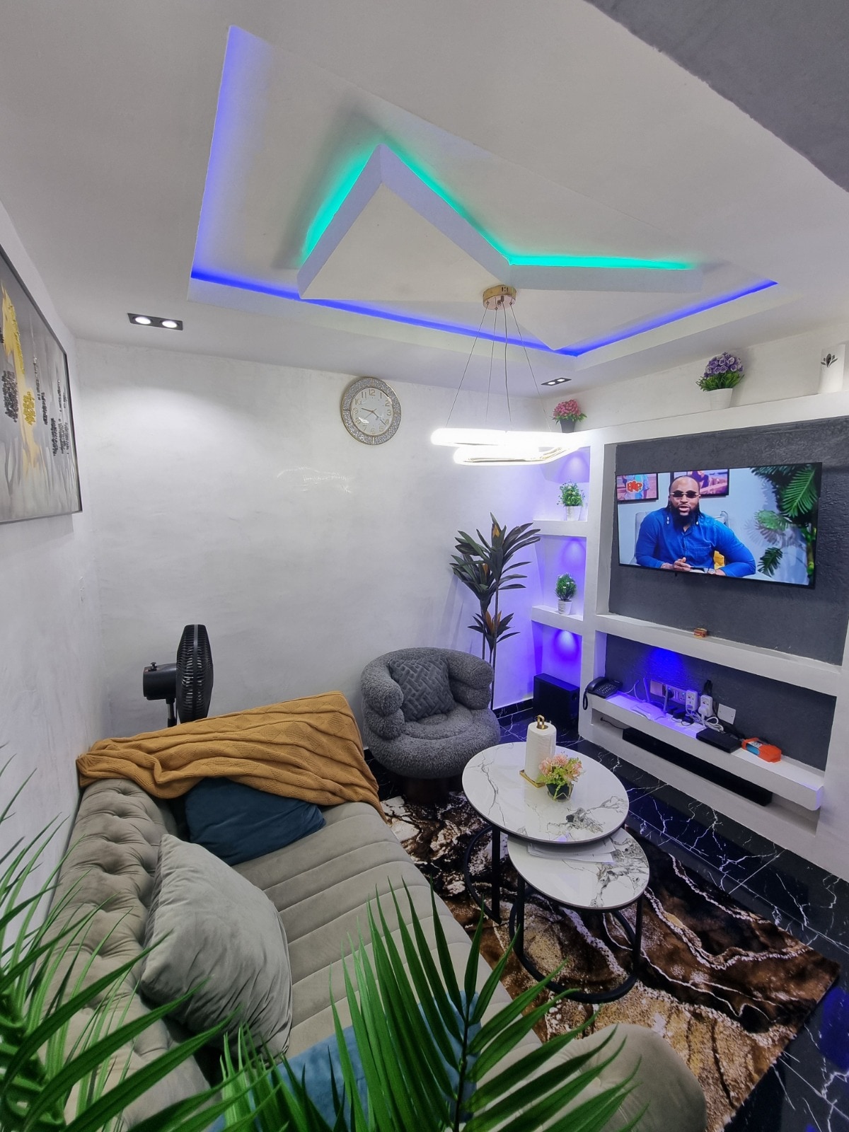 Guardias de seguridad las 24 horas en la puerta de entrada, generador de reserva, también energía solar para dar a los clientes suministro de energía las 24 horas ,supermercados, restaurantes, bares de 5 estrellas a solo 3 minutos, aeropuerto internacional a solo 25 minutos sin tráfico, toda la carretera tared desde el aeropuerto a mi ubicación. El inversor no alimenta el aire acondicionado , pero no hay nada de qué preocuparse , tenemos electricidad constante (nepa), especialmente durante la noche y durante el día caluroso, la red nacional solo se apaga durante 2 a 3 horas y vuelve a encenderse.