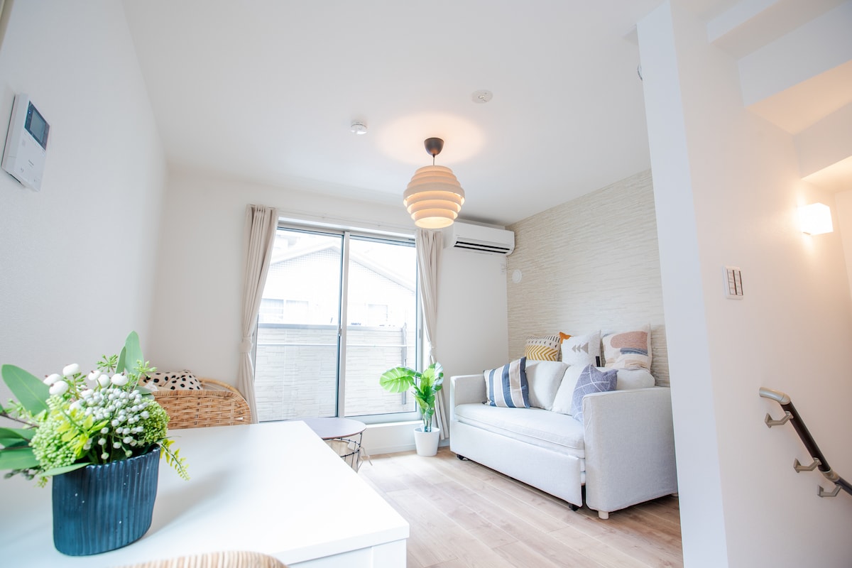 Una casa unifamiliar de tres pisos que puede alojar hasta 7 personas. Tranquilo en medio de la bulliciosa ciudad, disfruta del paisaje pastoral urbano. (3 dormitorios / sala de estar / cocina / 2 baños / 1 baño / lavabo / terraza en la azotea) El B&B está situado en el tranquilo y cómodo Meibai 2-chome, Tokio, a unos 5 minutos a pie de [la estación de Meibai], Fácil acceso a las principales zonas turísticas como Ikebukuro/Shinjuku/Shibuya/Estación de Tokio. Desde el B&B, se puede acceder fácilmente a puntos de registro populares como [Edificio del Gobierno Metropolitano de Tokio]/[Shinjuku Gyoen]/[Zoológico de Ueno]/[Shibuya]. Experiencia de estancia inmersiva, diseño nórdico cálido y relajante. Es como entrar en un mundo de cuento de hadas, disfrutar de un tiempo suave mientras se cura la atmósfera, es un gran punto culminante del viaje para relajarse. Restaurantes, tiendas de conveniencia, farmacias, escuelas e instalaciones de vida están a pocos pasos para satisfacer tus necesidades diarias. Desde el aeropuerto: - Aeropuerto de Haneda 1. Toma el autobús Limusina durante 1 hora hasta la estación de Ikebukuro, luego toma un taxi desde la estación de Ikebukuro durante 10 minutos para llegar a la casa. 2. 1 hora en monorriel y tren - Aeropuerto de Narita Se tarda 1 hora y 20 minutos en llegar a la estación de Shibuya en Narita Express y 19 minutos en llegar directamente en metro desde la estación de Shibuya.