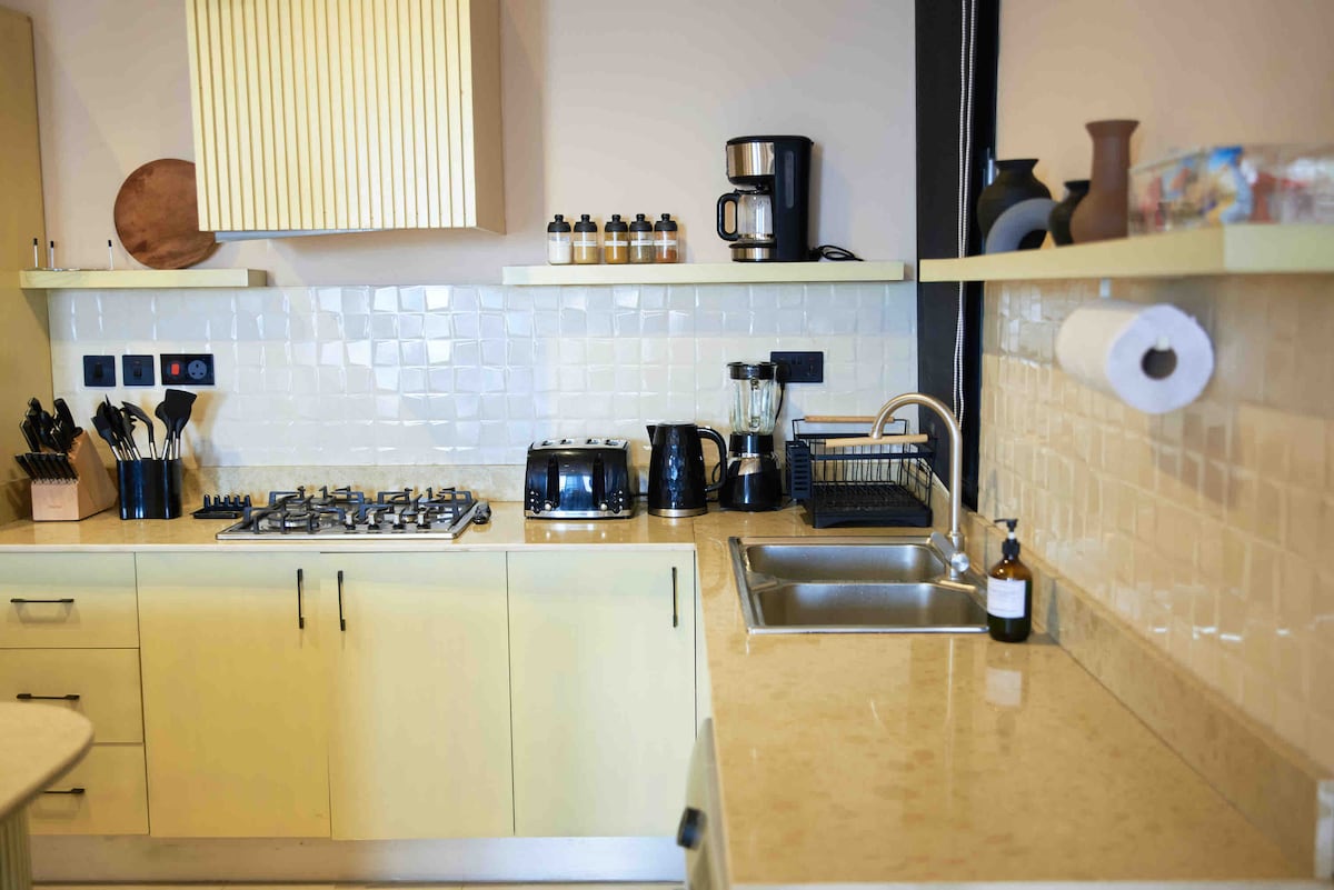 Welcome to a home designed for the perfect indoor–outdoor experience, featuring a pool, gazebo, laundry area, TV bar, and a compact fitness area for light workouts. Inside, enjoy a living space with a 65-inch smart TV and leather seating. The two bedrooms are ensuite, with modern bathrooms and excellent water pressure. The kitchen is fitted with burners and a heat extractor. WiFi is fast and wired, and power is available 24/7. A security guard and porter are always at your service.