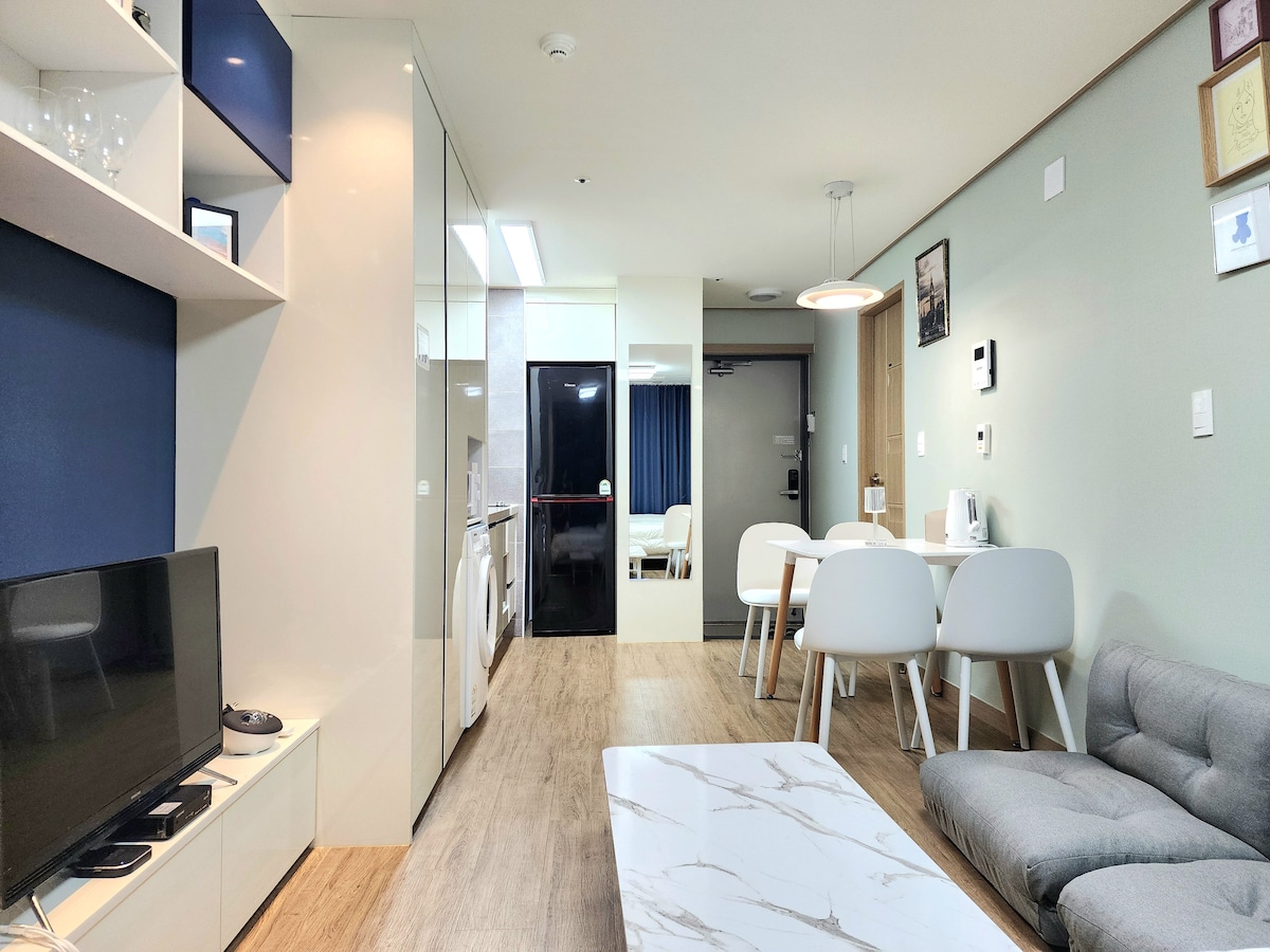10 minutos desde el aeropuerto de Jeju/3 habitaciones/2 baños/cocina/sala de estar/vuelo nocturno/check-in disponible/en el centro de Jeju/alojamiento para hasta 8 personas