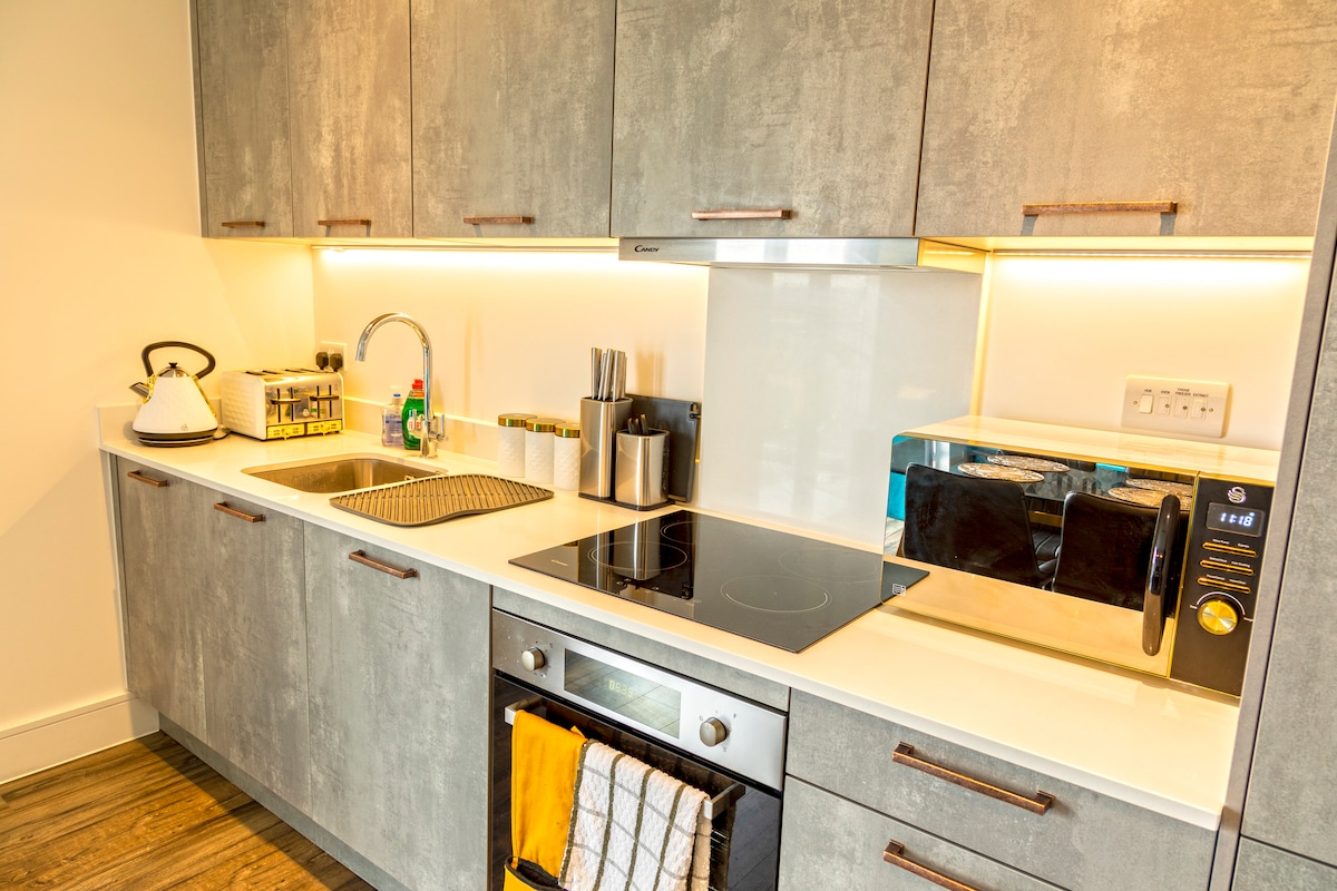 Te damos la bienvenida a nuestro elegante estudio temático en un edificio con ascensor. Disfrute de un mobiliario moderno, una cocina totalmente equipada con lavadora y lavavajillas, un baño espacioso con ducha, un dormitorio acogedor con cama y sofá cama, y un balcón privado. Acceso gratuito al GIMNASIO y ESPACIO DE TRABAJO compartidos. Aproveche el estacionamiento gratuito, el wifi superrápido en todo el alojamiento y un Smart TV. El estudio está a pocos minutos de la estación de tren de Orpington, con fácil acceso al puente de Londres. POTENCIAL DE RUIDO, LEE A CONTINUACIÓN.