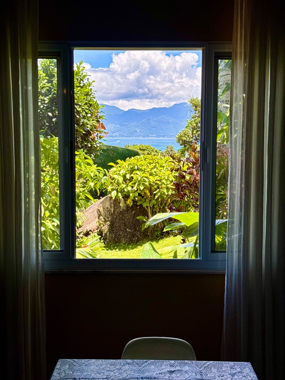 Aldeia is a small condominium situated 9 min. walk from the beach, on Vila do Abraão's upper part, next to the forest, in a quiet place where you sleep to the sound of crickets! There are 5 cottages that divide a large garden with trees, a refreshing shower and mountain view. The 100MB optic fiber internet connection is stable, which allows virtual meetings and remote work.