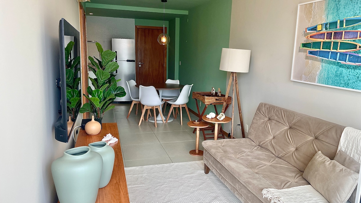 Un apartamento en frente a playa de Barra, a pocos minutos del Faro y cerca de los principales atractivos turísticos de la ciudad. El piso dispone de una terraza privada totalmente integrada en el salón, con jardín, tumbona y ducha para los días soleados además de una decoracíon muy cuidadosa. Dentro de un edificio nuevo y bien equipado, está muy cerca de una excelente red de servicios y ofrece una vista privilegiada del circuito de Carnaval. Ideal para parejas o grupos de hasta 4 personas.