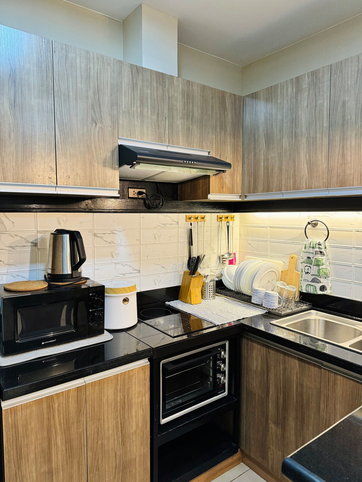 Our place is centrally-located which is walking distance to Atria Park Districk, Qualimed Hospital, Ateneo, Seda Hotel and S&R Shopping. It is a few minutes away from Festive Walk, SM City, Plazuela and Smallville. Masters bedroom has it’s own toilet/bath. Second room has a bunkbed. The second toilet/bath is located in the living room. Place has wifi, washing machine + dryer, induction cooktop, oven/toaster, microwave, water boiler, 55 inch television and heated showers.