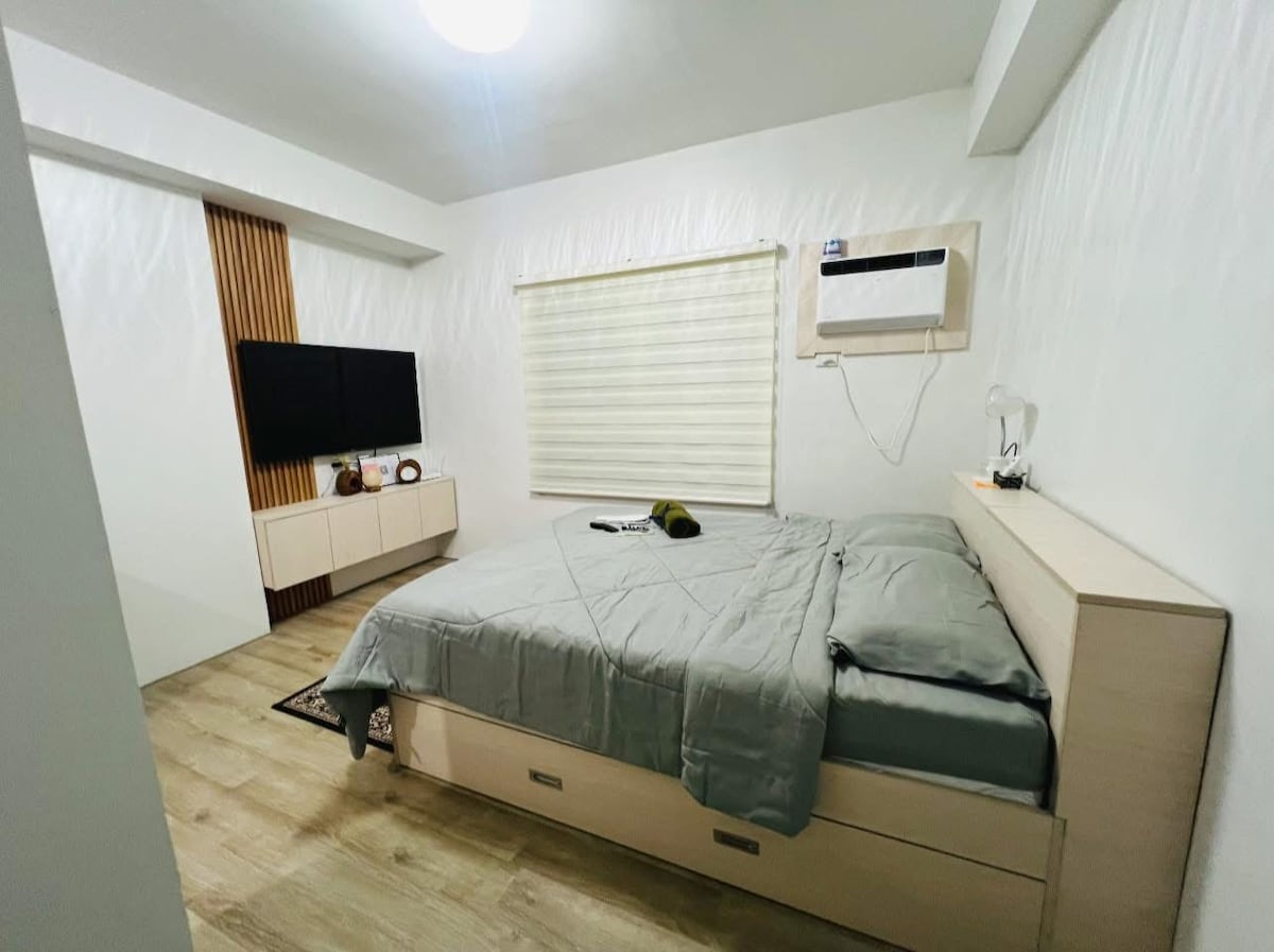 Este lugar minimalista y relajante se encuentra en el centro de la ciudad de Iloilo y cerca de centros comerciales y destinos imprescindibles (Casa Emperador, iglesia y plaza de Molo). Esta habitación tiene una cama tamaño queen y ofrece servicios similares a los de un hotel, como TV Sony de 55 pulgadas, wifi gratuito con velocidad de internet rápida, nevera, aire acondicionado, hervidor eléctrico, bidé con función de lavado femenino y trasero, calentador de agua (ducha caliente), arrocera, estufa de inducción y utensilios de cocina. También hay piscina (2 personas) y gimnasio disponibles.