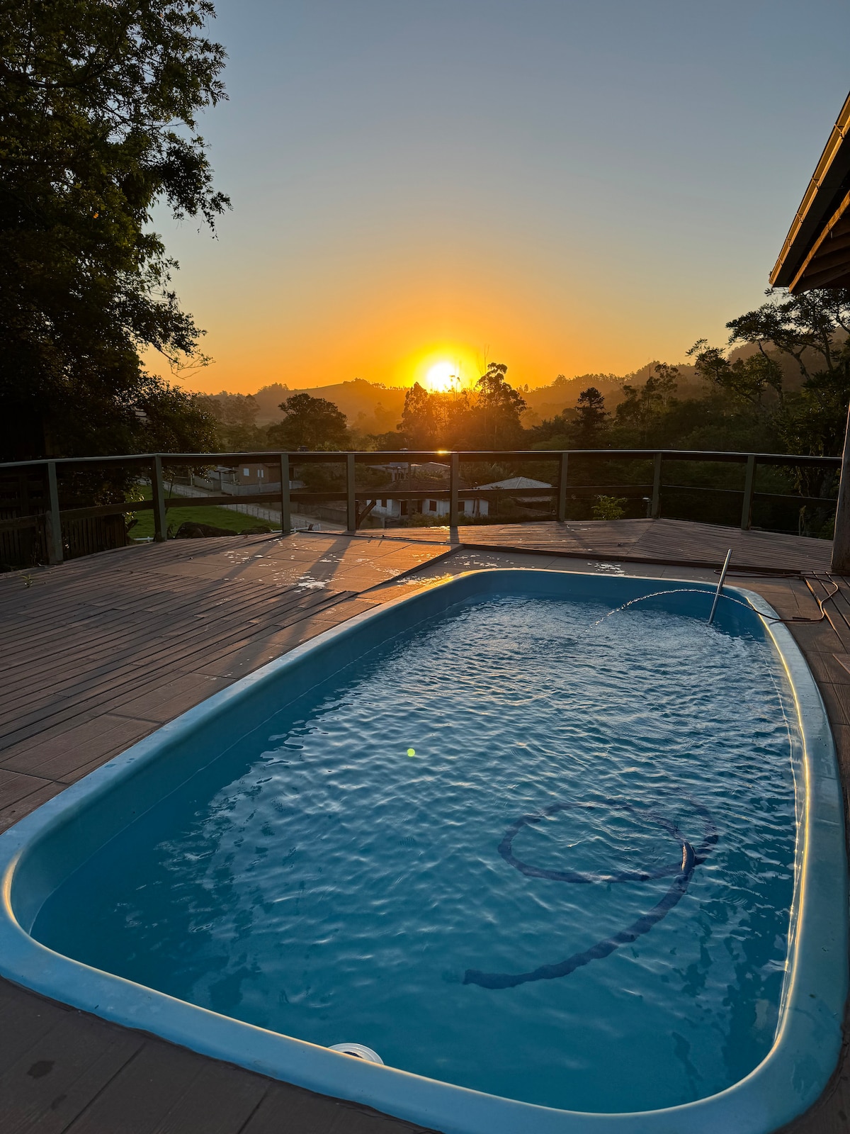 Imagina un retiro romántico, rodeado de un jardín florido con rosas, pájaros cantando suavemente en los árboles, creando una banda sonora natural. En el centro, una piscina con agua cristalina, una bañera perfecta para un momento para dos. Todo esto complementado con un ambiente acogedor e íntimo, donde la pareja puede relajarse y conectarse. Olvídate de tus preocupaciones, todo esto a solo 13 km de las principales playas de Imbituba.