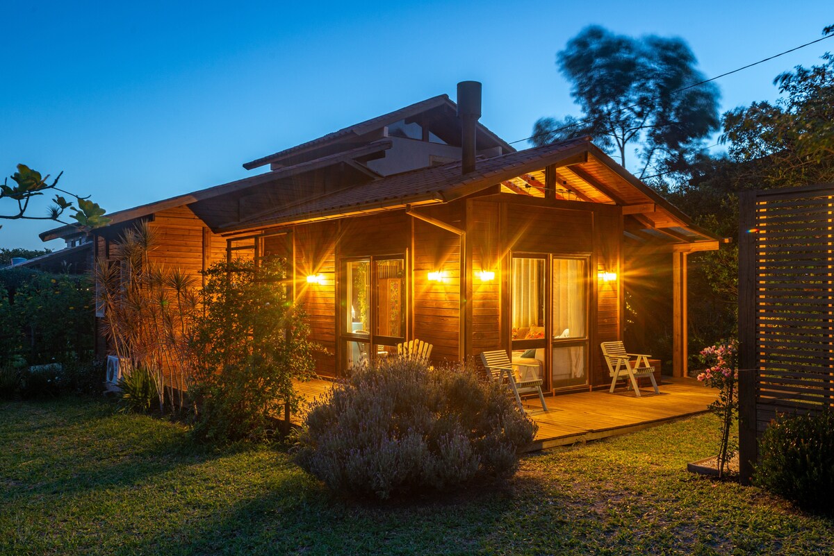 ¡Nuestro chalet es muy especial y acogedor! Buscamos planear un lugar donde el huésped pueda tener mucha comodidad y practicidad. ¡Está bien equipada con chimenea, aire acondicionado, lavavajillas y una deliciosa bañera de hidromasaje en el jardín! Internet rápido de 300 Mb. El pie derecho del Chalet es alto y las puertas y ventanas son para que el aire cruce dejándolo muy fresco. Escuchamos el sonido del mar en el Chalet y junto a él tenemos la Dulce Laguna. A la que se puede acceder a pie. ¡Bienvenido de nuevo!